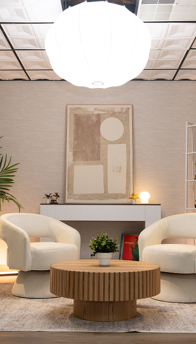 Designed with versatility and modern aesthetics in mind, this set offers a bright, airy environment. Its neutral color palette, soft textures, and greenery create a calming, elevated backdrop that lets your conversation, and your brand, take center stage.